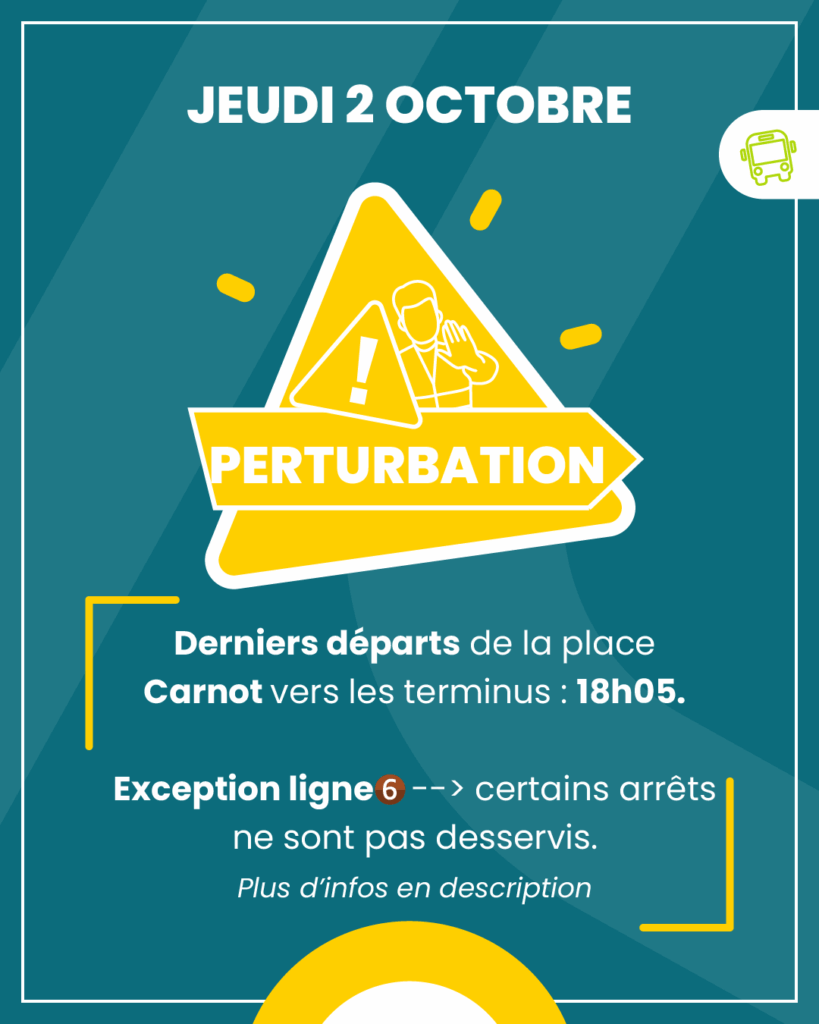 Derniers départs depuis la Place Carnot vers les terminus : 18h05
